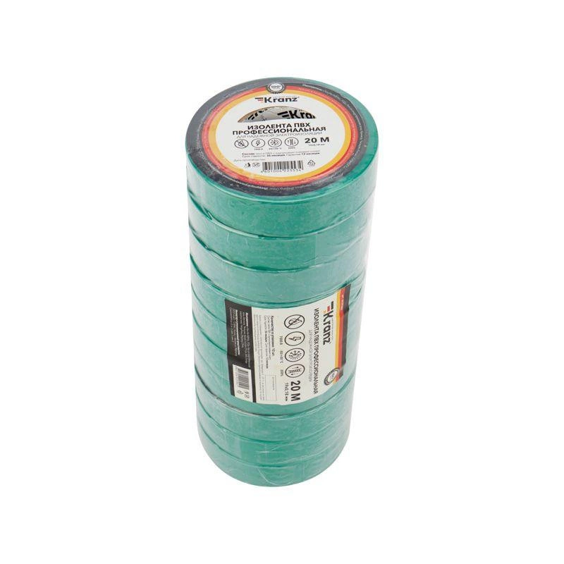 Изолента ПВХ профессиональная 0.18х19мм 20м зел. Kranz KR-09-2803