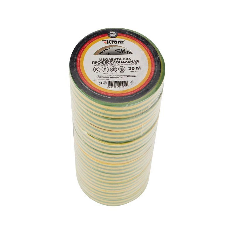 Изолента ПВХ профессиональная 0.18х19мм 20м желт./зел. Kranz KR-09-2807