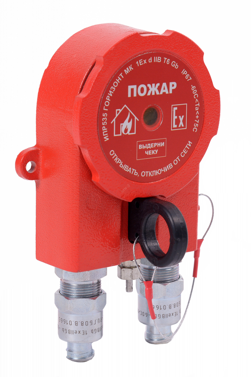 Взрывозащищенный ручной извещатель ИПР 535 Горизонт МК предназначен для ручного включения сигнала пожарной тревоги во взрывоопасных зонах, извещатель может применяться в качестве одиночного элемента, а также в шлейфах сигнализации (ШС) на замыкание (параллельное включение) или на размыкание (последовательное включение). Двухцветный индикатор состояния - индикация дежурного режима - вспышки зеленого цвета с периодом 5-7 сек, индикация режима тревога - мерцание красного цвета с частотой более 5Гц. Класс по ГОСТ 53325-2012 - извещателя ручного – класс А (активация одним действием). Извещатель ИПР 535 Горизонт предназначен для ручного включения сигнала пожарной тревоги во взрывоопасной зоне. Извещатель предназначен для установки во взрывоопасных зонах класса 0 и ниже.