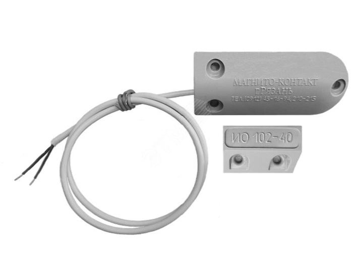 Извещатели охранные точечные магнитоконтактные ИО 102-40 предназначены для блокировки гаражных ворот, ангаров, железнодорожных контейнеров, телефонных шкафов и других конструктивных магнитопроводящих (металлических) и магнитонепроводящих (алюминиевых, деревянных и т.д.) элементов зданий и сооружений на открывание и смещение с выдачей в шлейф приёмно-контрольного прибора извещения о тревоге путем размыкания или замыкания контактов геркона.