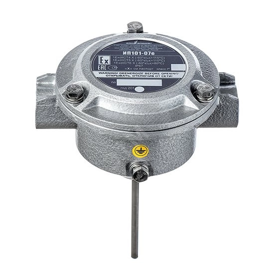 Извещатель пожарный тепловой взрывозащищенный ИП 1-07е предназначен для подачи извещения о пожаре при повышении температуры контролируемой среды выше заданного значения путем размыкания цепи шлейфа пожарной сигнализации. Извещатель должен применяться с сертифицированными кабельными вводами и заглушками, которые обеспечивают вид взрывозащиты `взрывонепроницаемая оболочка `d`, уровень взрывозащиты 1 для электрооборудования подгруппы IIС. Кабельные вводы должны иметь рабочий температурный диапазон и степень защиты оболочки, соответствующие условиям эксплуатации извещателя. Для комплектации необходимо выбрать 2 кабельных ввода. Извещатель ИП 1-07е не является средством измерения. Имеет два электронных ключа- первый ключ, нормально замкнутый, для последовательного включения извещателей в шлейф, второй ключ, нормально разомкнутый, для параллельного включения извещателей в шлейф.