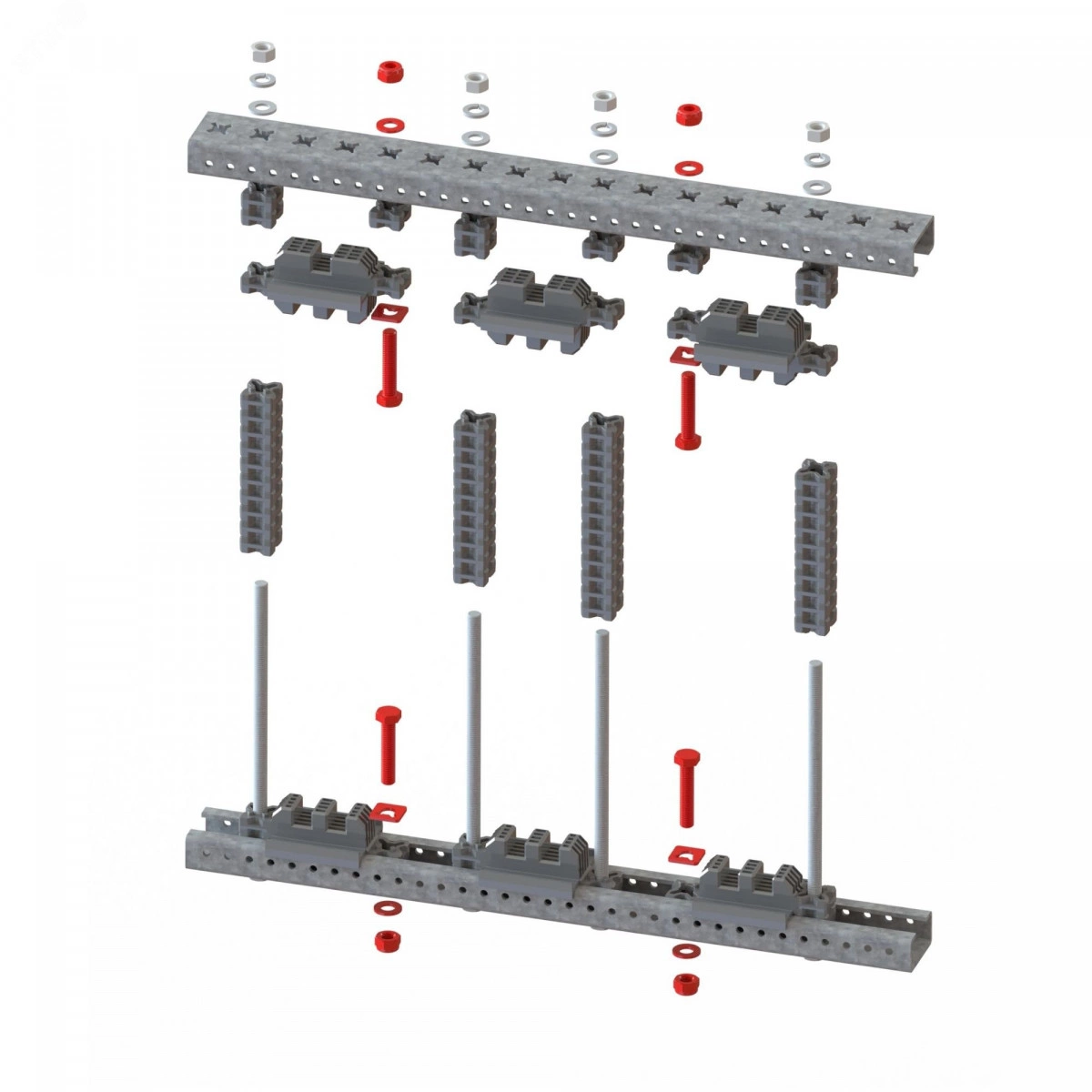Комплект состоит из болтов и остальных метизов и служит для увеличения межфазного расстояния в шинодержателях главной шиной системы. Не создает магнитного контура при протекании тока по установленным шинам.