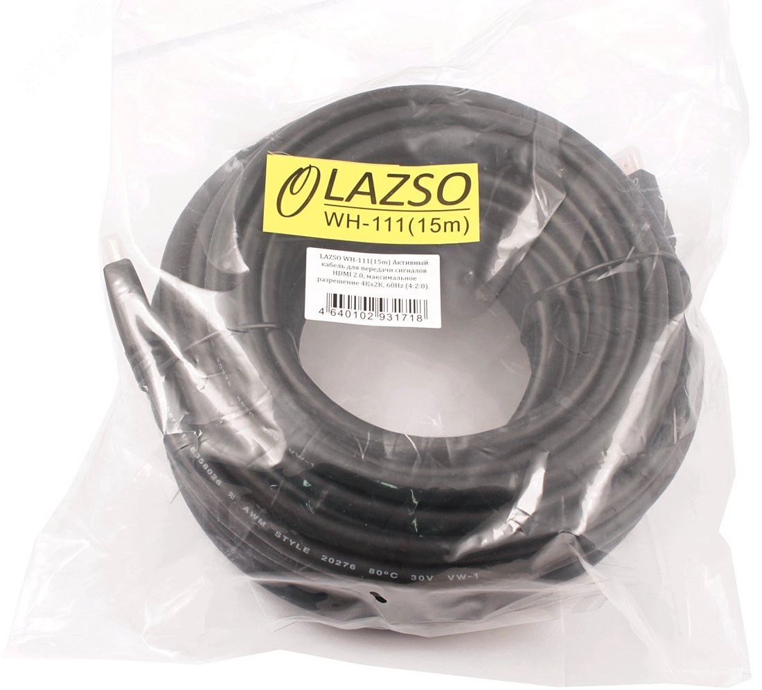 Кабель активный для передачи сигналов HDMI 2.0 А-А, 19 pin, 26AWG, 15м.