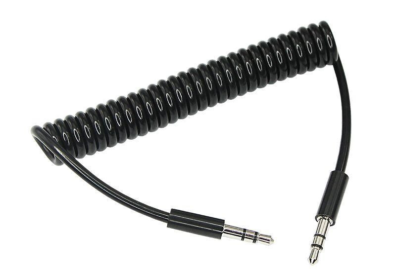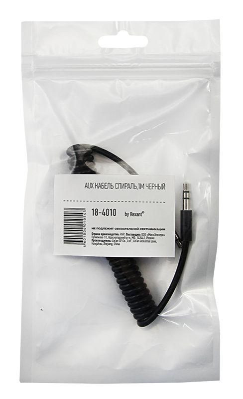 Кабель аудио AUX 3.5мм шнур спираль 1м черн. Rexant 18-4010