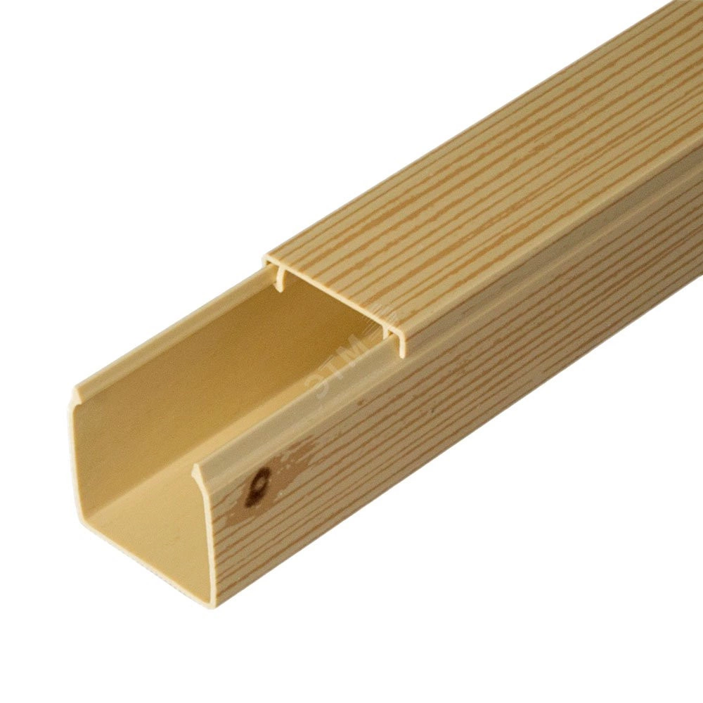 Кабельный канал из поливинилхлорида предназначен для прокладки слаботочных и силовых электрических коммуникаций открытого типа в производственных и жилых помещениях, административных зданиях, учебных, детских и медицинских учреждениях, а также при новом строительстве, ремонте и реконструкции. Кабельный канал имеет высокую коррозионную и химическую стойкость, высокую пластичность. Двойной замок надежно удерживает крышку (возможность самопроизвольного открытия крышки под действием силы тяжести исключена). Кабельный канал точно имитирует цвет дерева, создавая привлекательный внешний вид интерьера. Текстуры наносятся на кабельный канал методом термопечати, с трёх сторон - на крышке и боковых стенках (кроме больших сечений). Категория горения - ПВ0. Цветовое исполнение - сосна.