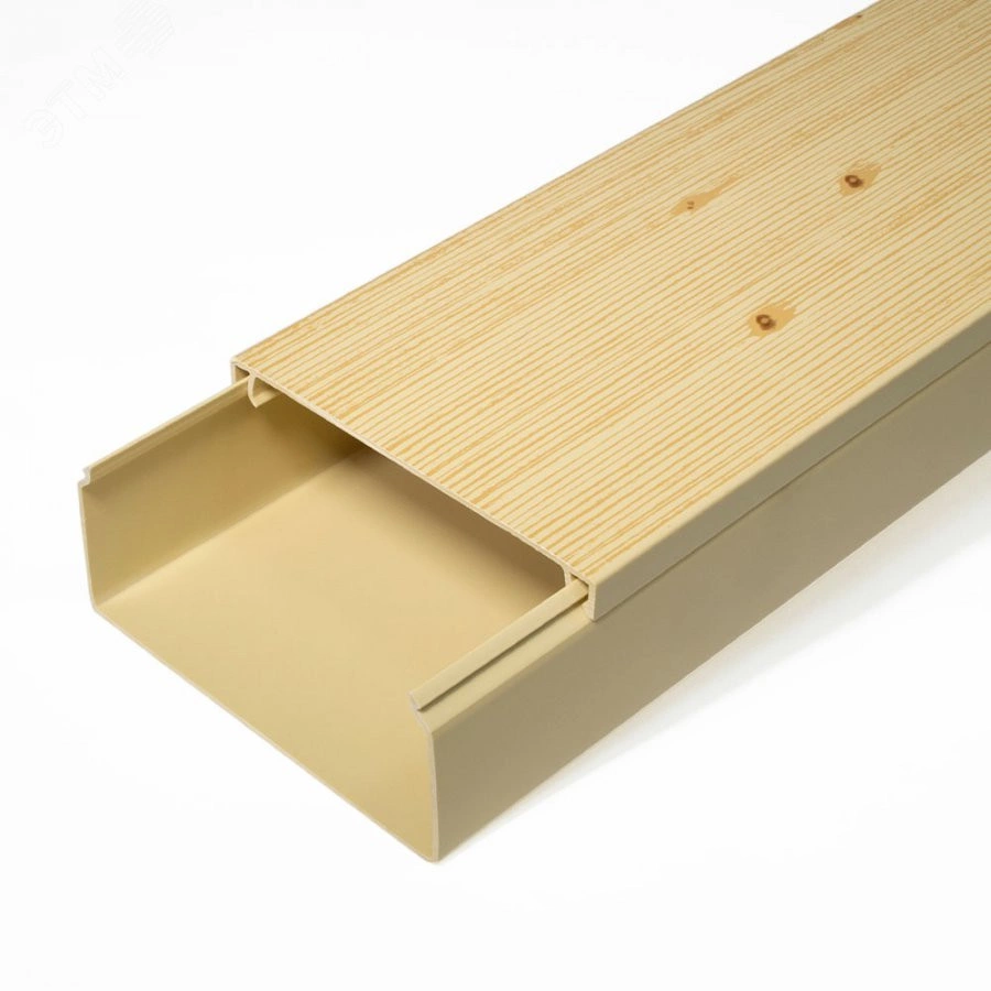 Кабельный канал из поливинилхлорида предназначен для прокладки слаботочных и силовых электрических коммуникаций открытого типа в производственных и жилых помещениях, административных зданиях, учебных, детских и медицинских учреждениях, а также при новом строительстве, ремонте и реконструкции. Кабельный канал имеет высокую коррозионную и химическую стойкость, высокую пластичность. Двойной замок надежно удерживает крышку (возможность самопроизвольного открытия крышки под действием силы тяжести исключена). Кабельный канал точно имитирует цвет дерева, создавая привлекательный внешний вид интерьера. Текстуры наносятся на кабельный канал методом термопечати, с трёх сторон - на крышке и боковых стенках (кроме больших сечений). Категория горения - ПВ0. Цветовое исполнение - сосна.