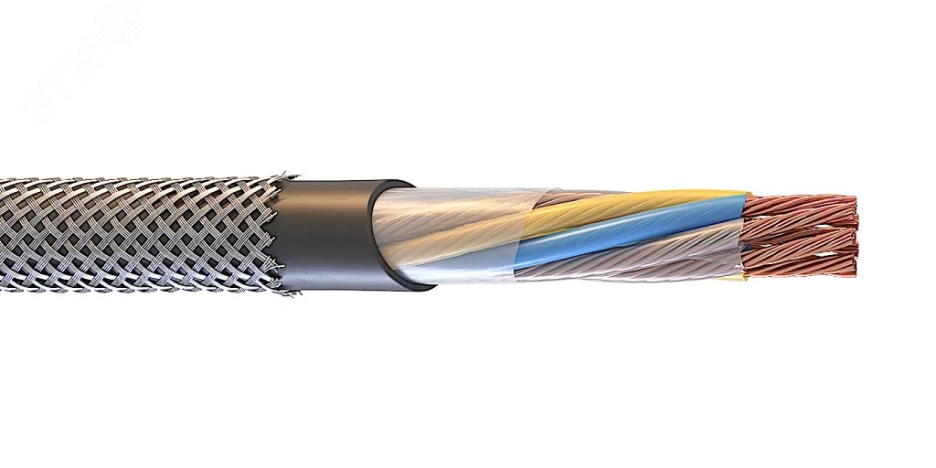 Кабель с медными жилами с изоляцией из полиэтилена, в ПВХ оболочке пониженной пожароопасности, и пониженной степенью газовыделения и дымовыделения, в общем экране из медных луженых проволок.