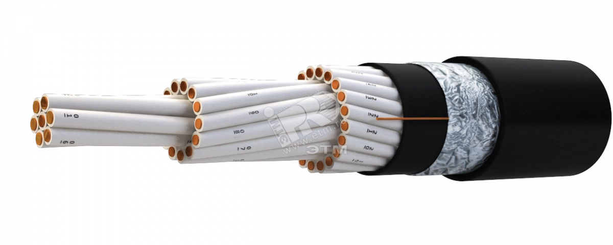 Кабель контрольный, не распротраняющий горение при прокладке в пучке, для стационарной прокладки, с нормиованным дымовыделением, экранированный