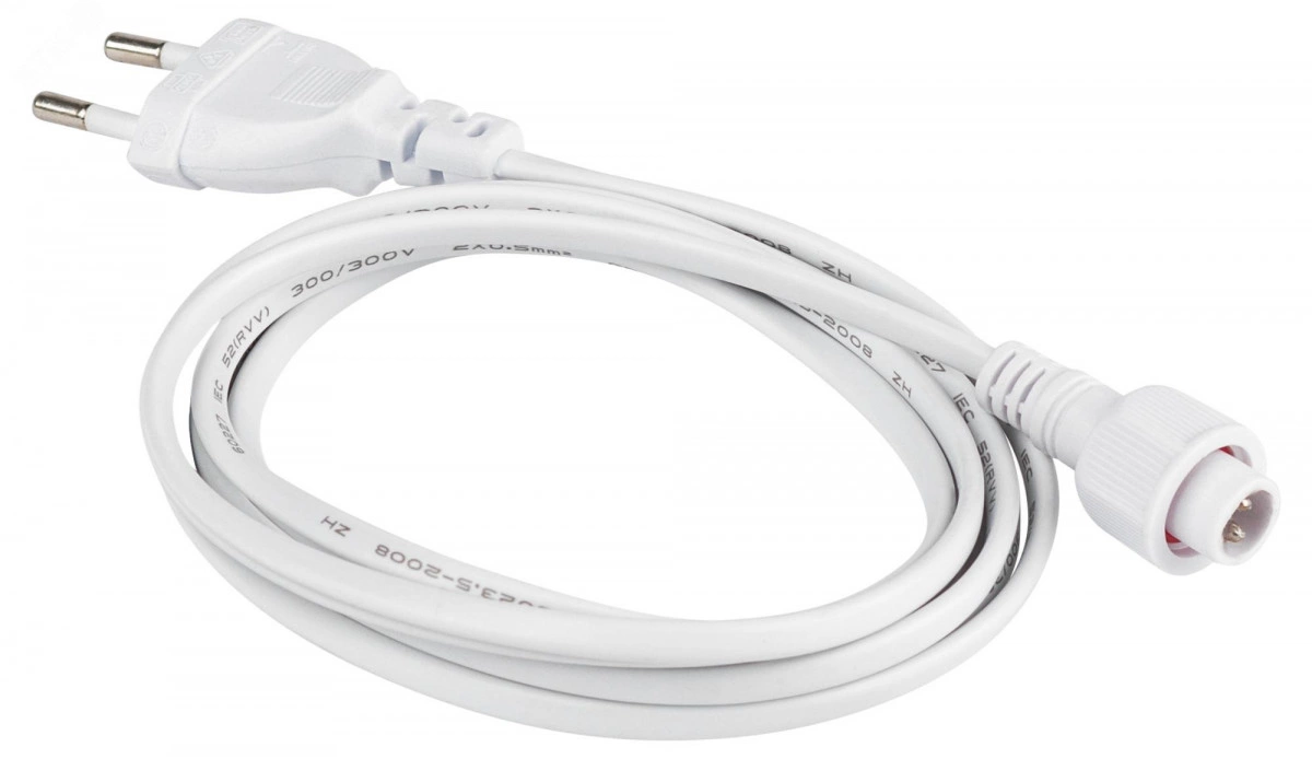Cable-DCWP-2pin(PT2)- Кабель для подключения в сеть 2 контактных ip светильников, гирлянд, разветвителей. Длинна кабеля 2 метра, медные жилы сечением 0,5 мм2 позволяют подключить токовую нагрузку 2А, 440 Вт. Разъем герметичен, соединение с помощью гайки М15.