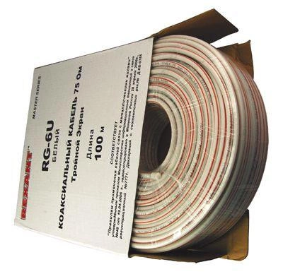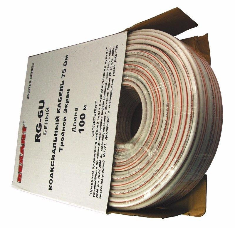 Кабель RG-6U+CU (75%) 75Ом (тройной экран) "MASTER" Б (уп.100м) Rexant 01-2241