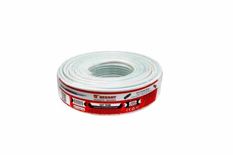 Кабель SAT 703B (75 Ом), Cu/Al/Cu 75 % (бухта 50 м) белый REхANT коаксиальный радиочастотный со вспененной полиэтиленовой изоляцией и в ПВХ оболочке. Является самым распространенным решением для подключения внутренних и межблочных соединений общепромышленных и бытовых радиотехнических устройств, для подключения систем телевидения, а также для подключения видеокамер наружного и внутреннего наблюдения.