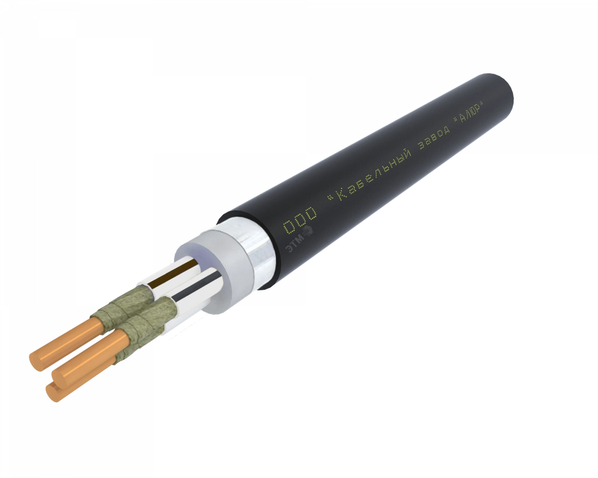 Кабель силовой с медными жилами, с термическим барьером из слюдосодержащих лент, с изоляцией и оболочкой из поливинилхлоридного пластиката пониженной пожарной опасности, с общим экраном из алюмофлекса под оболочкой. Кабели предназначены для кабельных линий питания оборудования систем безопасности, электропроводок цепей систем пожарной безопасности (цепи пожарной сигнализации, питания насосов пожаротушения, освещение запасных выходов и путей эвакуации), для электропроводок в операционных отделениях больниц, цепей аварийного электроснабжения и питания оборудования (токоприемников), функционирующих при пожаре.