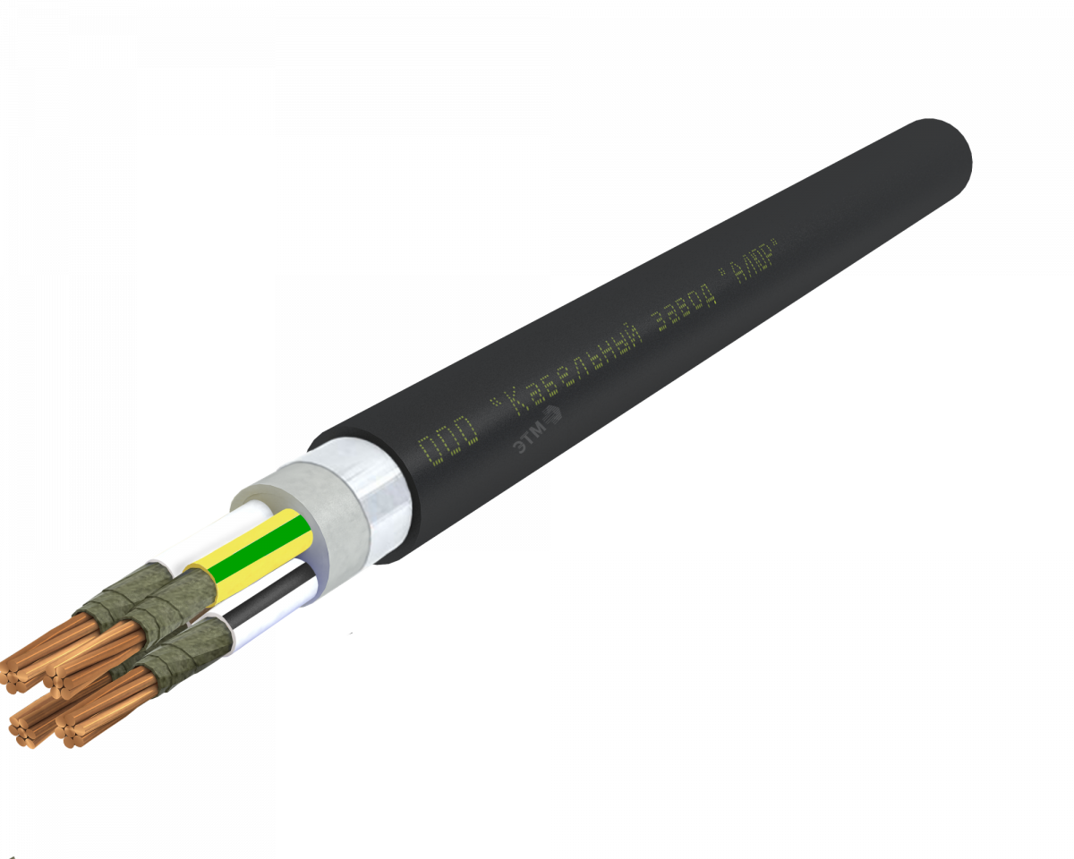Кабель силовой с медными жилами, с термическим барьером из слюдосодержащих лент, с изоляцией и оболочкой из поливинилхлоридного пластиката пониженной пожарной опасности, с общим экраном из алюмофлекса под оболочкой. Кабели предназначены для кабельных линий питания оборудования систем безопасности, электропроводок цепей систем пожарной безопасности (цепи пожарной сигнализации, питания насосов пожаротушения, освещение запасных выходов и путей эвакуации), для электропроводок в операционных отделениях больниц, цепей аварийного электроснабжения и питания оборудования (токоприемников), функционирующих при пожаре.