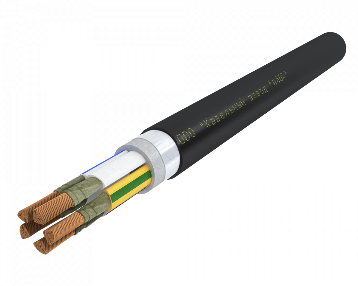 Кабель силовой с медными жилами, с термическим барьером из слюдосодержащих лент, с изоляцией и оболочкой из поливинилхлоридного пластиката пониженной пожарной опасности, с общим экраном из алюмофлекса под оболочкой. Кабели предназначены для кабельных линий питания оборудования систем безопасности, электропроводок цепей систем пожарной безопасности (цепи пожарной сигнализации, питания насосов пожаротушения, освещение запасных выходов и путей эвакуации), для электропроводок в операционных отделениях больниц, цепей аварийного электроснабжения и питания оборудования (токоприемников), функционирующих при пожаре.