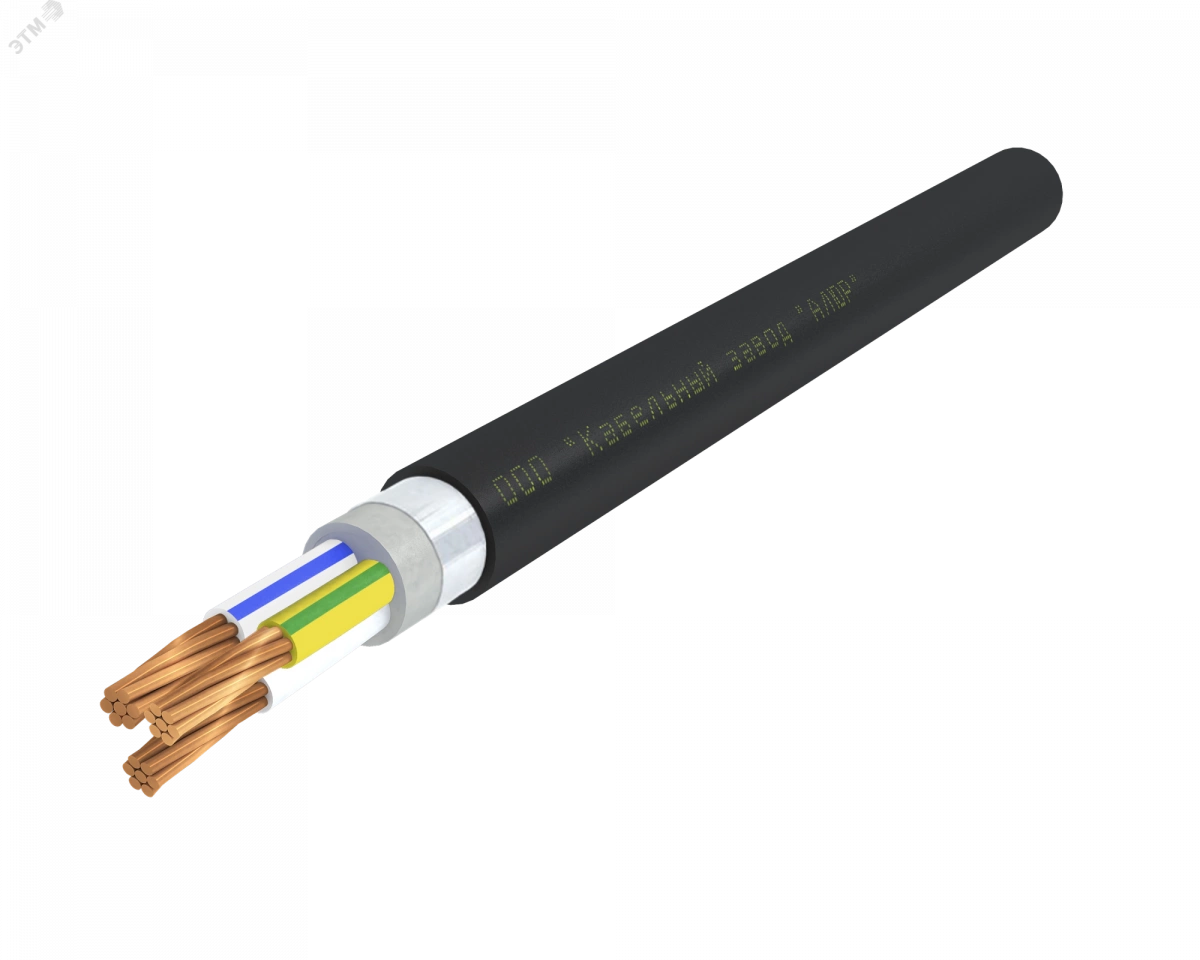 Кабель силовой с медными жилами, с изоляцией и оболочкой из поливинилхлоридного пластиката пониженной пожарной опасности, с общим экраном из алюмофлекса под оболочкой. Кабель предназначен для групповой прокладки кабельных линий в кабельных сооружениях и помещениях внутренних (закрытых) электроустановок.