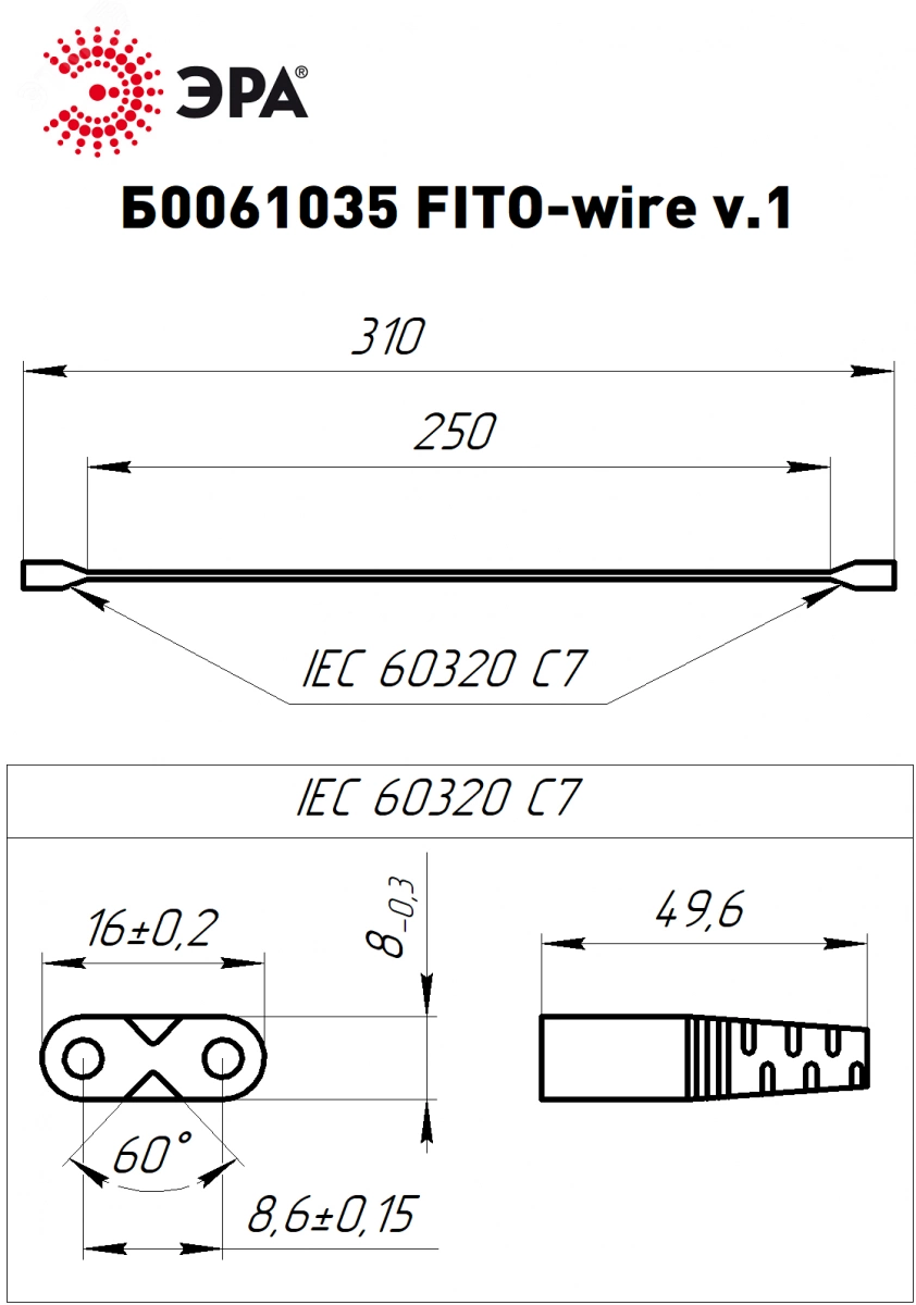 Кабель соединительный для фитолампы FITO-wire v.1 0.25 м коннекторы IEC C7- IEC C7