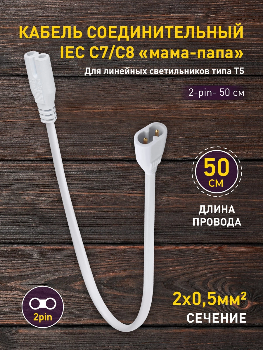 Кабель соединительный для фитолампы FITO-wire v.2 0.5 м коннекторы IEC C7- IEC C8
