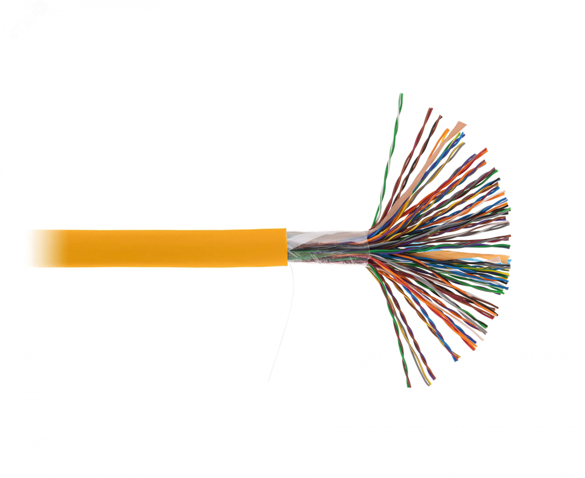 Многопарный кабель на основе витой пары, категории 5 применяется для организации магистральных кабельных сегментов со скоростью передачи данных до 100 Мбит/c. Также может быть использован для передачи аналоговой информации. Кабель EC-UU050-5-LSZH-OR-3 содержит 50 пар витых медных проводников, выполнен в неэкранированном исполнении, соответствует категории 5 и предназначен для внутренней прокладки. Поставляется на фанерных барабанах, по 305м.