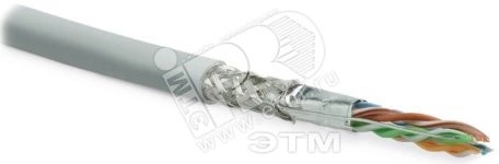 Кабель витая пара, экранированная SF/UTP, категория 6, 4 пары (26 AWG), многожильный (patch), экран - фольга + медная оплетка, LSZH, серый (500 м)