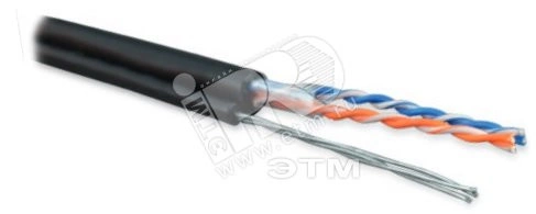 Кабель витая пара, неэкранированная U/UTP, категория 5, 2 пары (24 AWG), одножильный (solid), с металлическим тросом, внешний, PE, -40°C– +60°C, черный (500 м)
