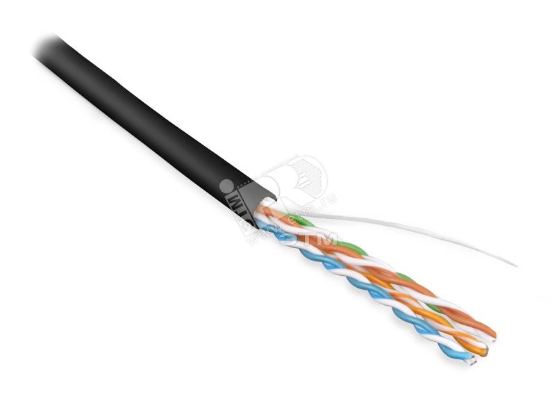 Кабель витая пара, неэкранированная U/UTP, категория 5e, 4 пары (24 AWG), одножильный (solid), LSZH нг(С)-HF, -20°C – +75°C, черный (305 м)
