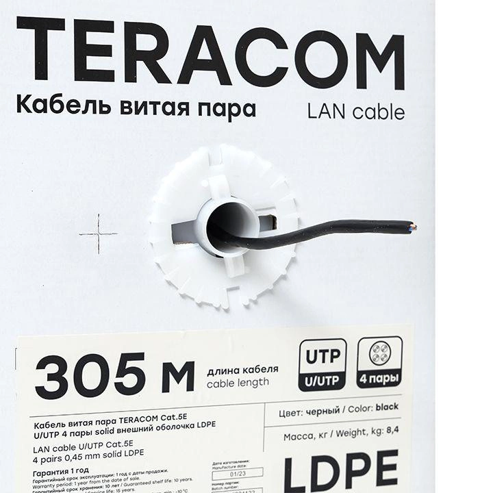 Полное описание: Кабель витая пара U/UTP кат.5e 4 пары solid внешний оболочка LDPE черн. TERACOM EKF TRC-5EUTP-04PE-BK-OUT3