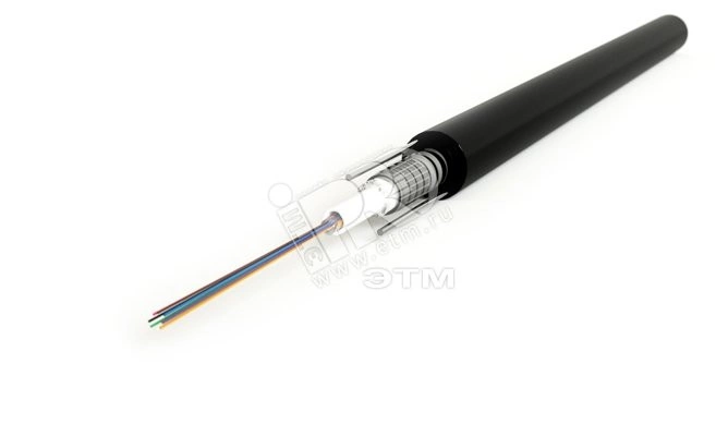 Кабель волоконно-оптический 50/125 (OM2) многомодовый 8 волокон single loose tube гелезаполненный с силовыми элементами бронированный гофрированной стальной лентой для внешней прокладки PE черный
