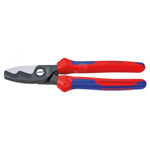 95 12 200 SB Кабелерез для резки кабеля из меди и алюминия. Не подходит для стальной проволоки и твёрдотянутых медных проводников. закаленные режущие кромки с прецизионной шлифовкой. Режут гладко и чисто, без деформации материала. благодаря разделению процесса резки на первичный рез (изоляция в передней области резки) и вторичный рез (проводник в задней области резки) можно производить резку кабелей до 20 мм одной рукой. малозатратная работа благодаря оптимальной передаче усилия и новой геометрии режущих кромок. Защита от защемления пальцев. регулируемый шарнир, винтовой, самофиксирующийся. карта самообслуживания/ блистер. - Параметры режима резки - медный кабель, многопроводный - 70mm? - Параметры режима резки - медный кабель, многопроводный - 20mm - AWG - 2/ 0