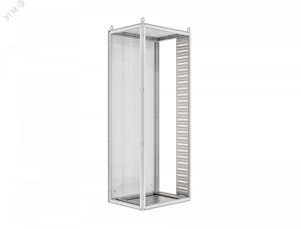 Кабельная трасса крепится между потолочной рамой и рамой основания каркаса высотой 2000 мм. Ширина трассы 200 мм. С системной перфорацией для крепления различных кабельных направляющих, а также с Т-образным держателем для кабельных стяжек.