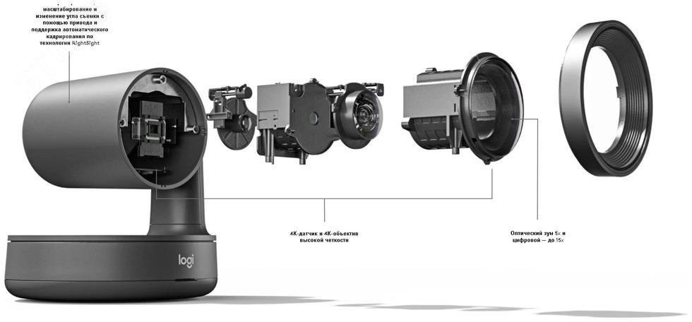 Logitech Rally Plus Camera Ultra-HD ConferenceCam обеспечивает видео студийного качества и непревзойденную разборчивость речи, а также поддерживает технологии автоматизации RightSense. Таким образом, значительно упрощается проведение видеоконференций с помощью приложений, которые совместимы с устройствами USB, в том числе Google Hangouts Meet, Microsoft Skype® для бизнеса, Microsoft Teams и Zoom. Благодаря модульной аудиосистеме, продуманному расположению кабелей и высококачественной отделке корпусов устройств оборудование Rally прекрасно вписывается в помещения средних и больших размеров.