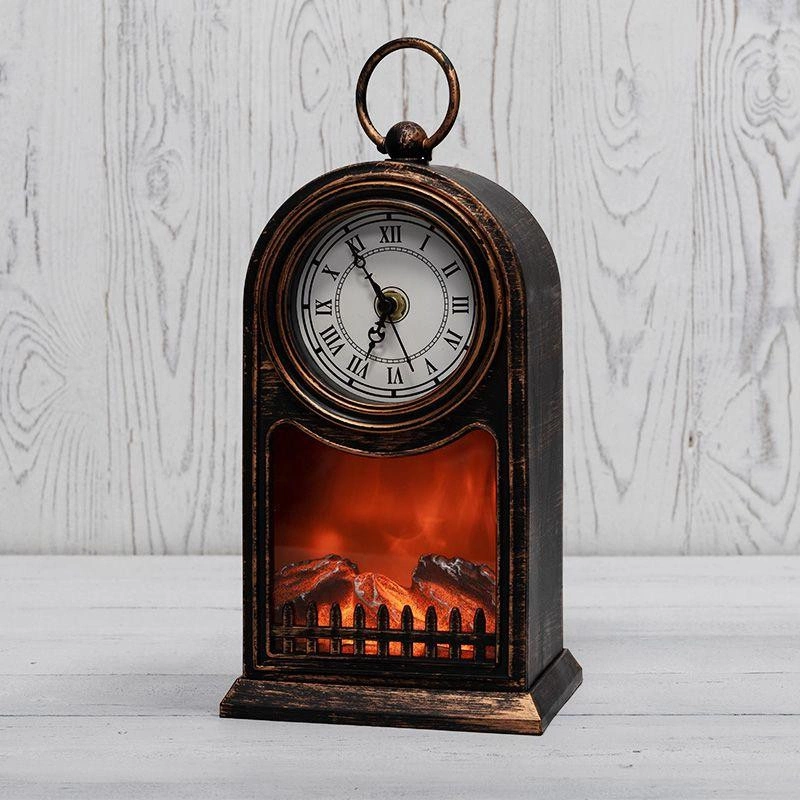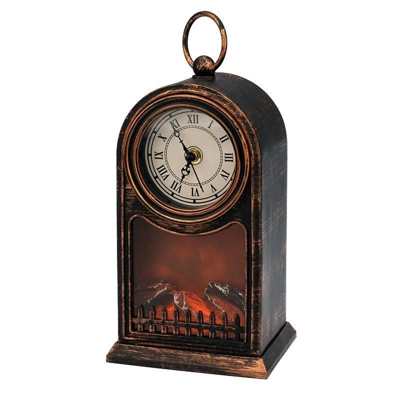 Полное описание: Камин светодиодный "Старинные часы" 14.7х11.7х25см эффект живого огня USB бронз. элементы питания 2хC (не в компл.) Neon-Night 511-021