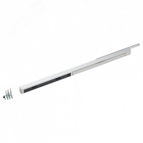 Скользящий канал G-EMR позволяет оснастить противопожарные и дымозащитные двери так, чтобы они удерживались в открытом положении и управлялись автономно от других систем. Фиксатор регулируется в диапазоне угла открывания от 80 градусов до 140 градусов. При использовании функции фиксации в открытом положении настроенное значение угла является максимальным, на этот угол устанавливается дверной стопор. В случае тревоги или отключения питания, фиксация створки прекращается, и дверь закрывается доводчиком. Благодаря регулируемому усилию (без инструментов), фиксатор можно легко отключить и вручную. Система скользящего канала G-EMR состоит из рычага, самого скользящего канала, ползунка, электромеханического фиксатора, датчика дыма, блока питания, крышки, крепежных винтов и торцевых заглушек. Подходит как для левых, так и правых дверей.