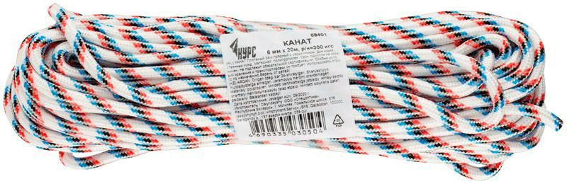 Канат полипропиленовый 24-х прядный с сердечником 6ммх20м р/н=300кгс КУРС 68401