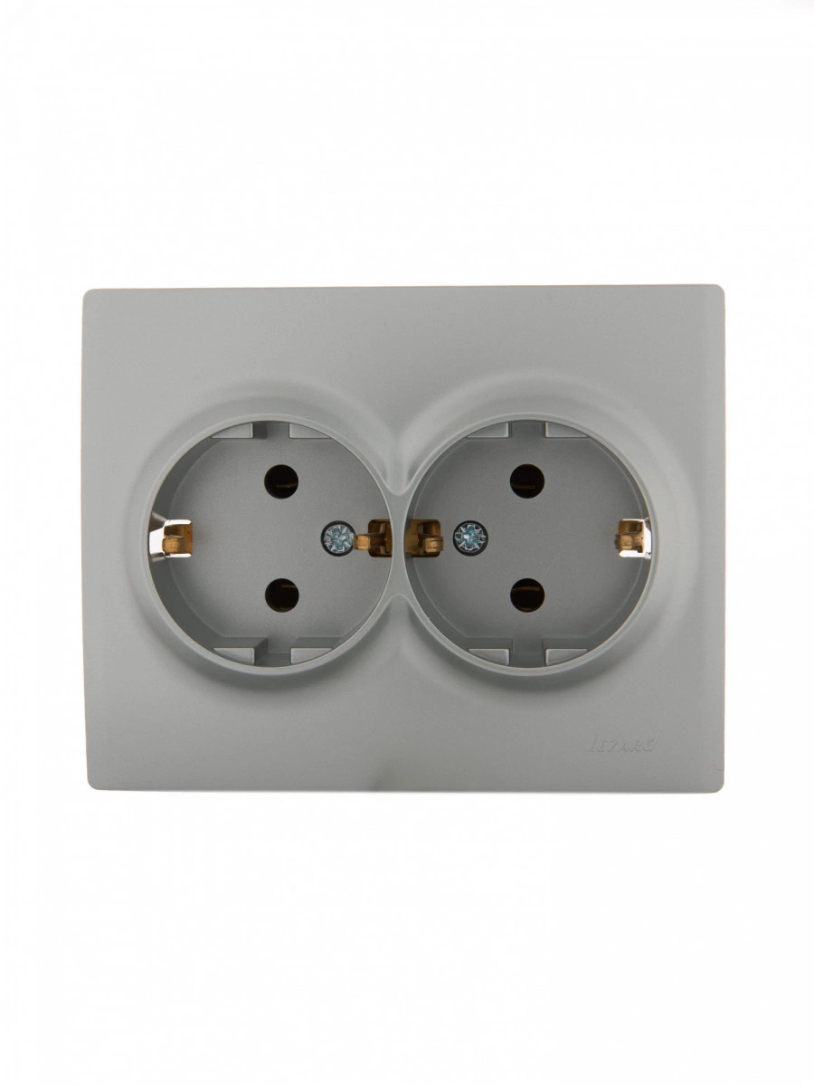 KARINA Розетка двойная с/з керамика матовое серебро (10шт/120шт)