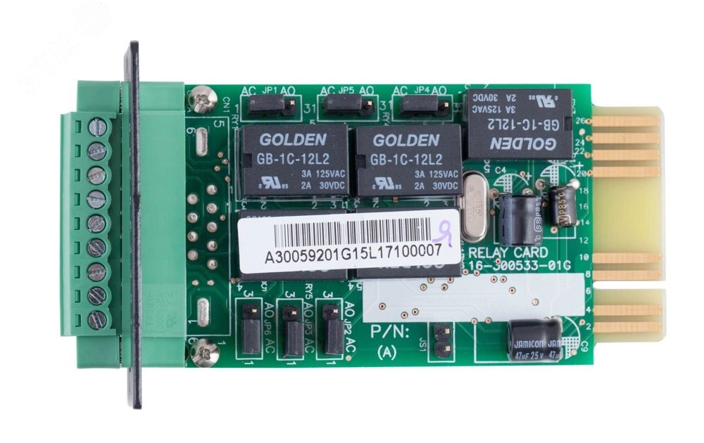 КАРТА AS400 (DRY CONTACT) - контроль и управление 5 настраиваемыми выходными реле, запуск действий на внешних устройствах при изменении состояния ИБП, гибкая настройка реакции на события – от сбоя питания до разряда батареи, простая установка и настройка в ИБП STARK COUNTRY, автоматический выбор состояния сигнала, подходит для работы с большинством актуальных приложений, выгодное бюджетное решение.