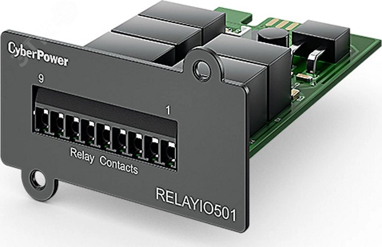 Карта сухих контактов, является дополнительной надстройкой управления для определенных серий ИБП CyberPower. После установки карты в слот на ИБП карта может выдавать несколько предупреждений при возникновении проблем с питанием, включая отказы ИБП, перегрузки, перегрев и т.д. А также карта имеет функцию удаленного отключения ИБП в режиме работы от батареи в один клик.