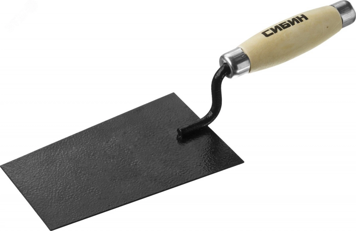 Кельма используется для нанесения строительных растворов, стальное полотно обеспечивает прочность конструкции, а деревянная ручка удобство в работе.