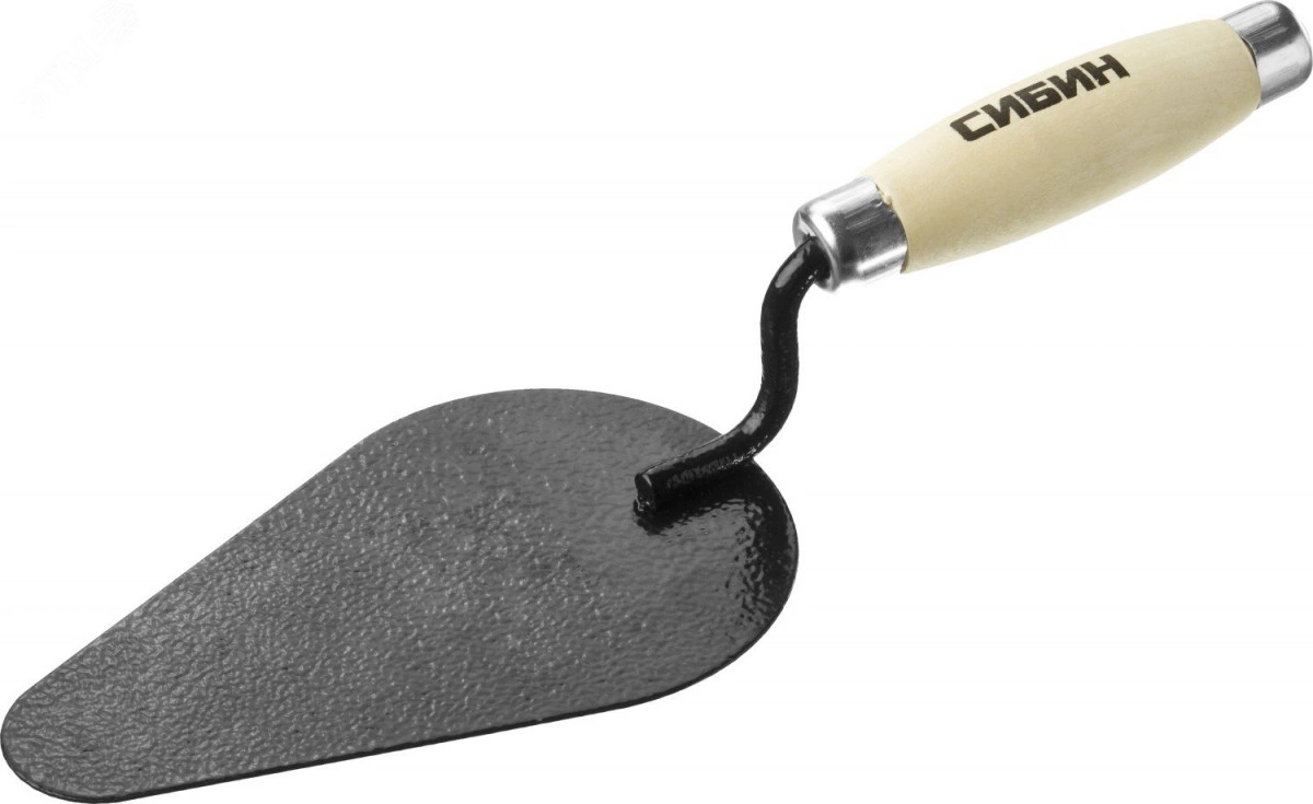 Кельма используется для нанесения строительных растворов, стальное полотно обеспечивает прочность конструкции, а деревянная ручка удобство в работе.