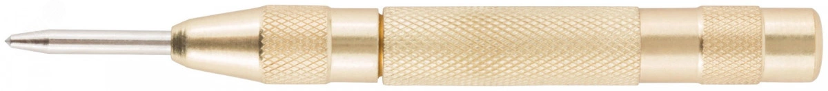 Для нанесения разметки и кернения незакаленной стали твердостью до 45 HRC, а также цветных металлов, пластика, дерева, ЛДСП и т.п. материалов.Благодаря пружинному механизму не требует применения молотка и может использоваться одной рукой. Удобен для работы в труднодоступных местах. Сила удара регулируется поворотом колпачка в верхней части кернера. Твердость наконечника 58-60 HRC. Материал - корпус из инструментальной стали с латунным покрытием, наконечник из быстрорежущей (HSS) стали с антикоррозийным никелевым покрытием. Упаковка - блистер.