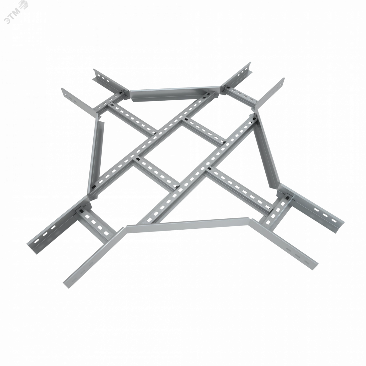 Создавать кабеленесущие конструкции любой степени сложности позволяет конструктив х-разветвителя для лестничного лотка. Фасонная секция применяется для ответвления кабельной трассы при монтаже одновременно во все стороны. Подходит для соединения c металлическим лестничным лотком шириной 600 мм и высотой борта 70 мм. Изделие оцинковано методом горячего погружения согласно ГОСТ 9.307-89 и используется для монтажа в помещениях с высокой влажностью и низкой загрязненностью, под открытым небом и в слабокоррозийной среде, в соответствии с ГОСТ15150-69. Соединение между секциями происходит с использованием подходящих крепежных элементов. Для дополнительной защиты элемента кабельной трассы от механических повреждений, попадания пыли и мусора, используйте крышку.