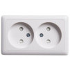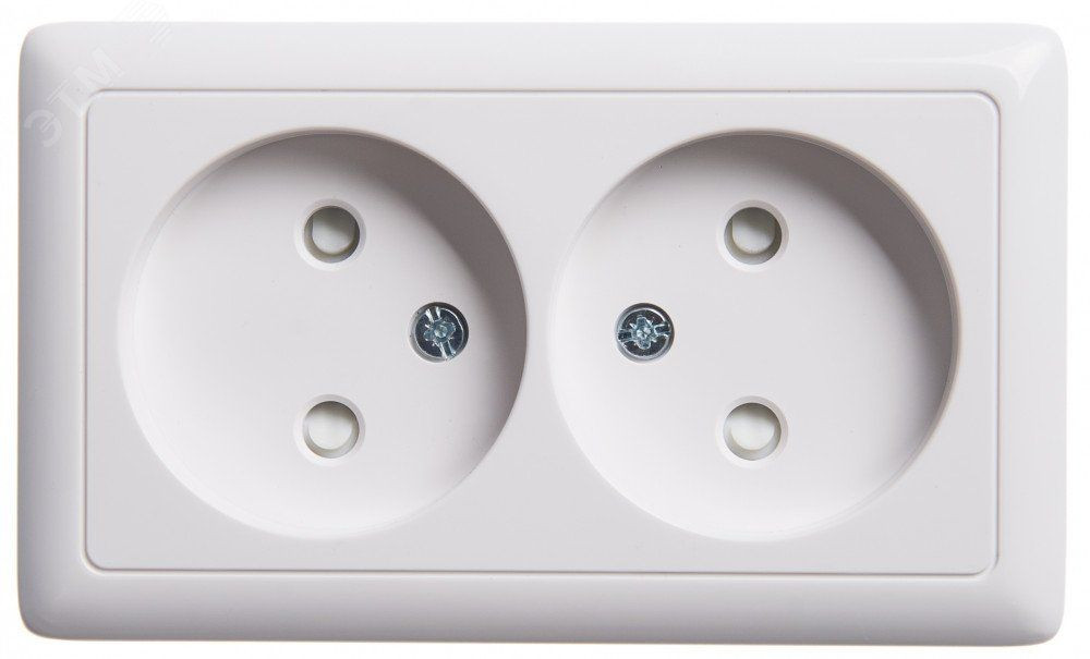 Розетка Systeme Electric (ранее Schneider Electric) ХИТ (открытой установки, цвет белый) двойная без заземления со шторками, с изолирующей пластиковой пластиной предназначена для сетей до 250 В на ток до 16 А. Двойная розетка позволяет подключить два устройства в одном месте. Шторки обеспечивают дополнительную безопасность в доме, где находятся дети. Сделано в России.