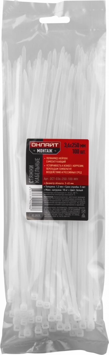 Хомут 250х3,6 мм нейлон белый ОНЛАЙТ (100 шт)