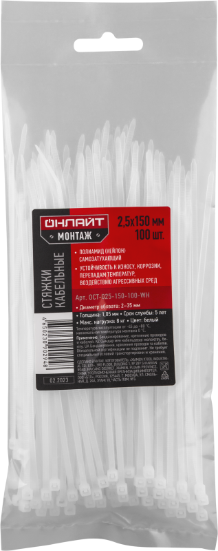 Полное описание: Хомут 90 294 OCT-025-150-100-WH (уп.100шт) ОНЛАЙТ 90294