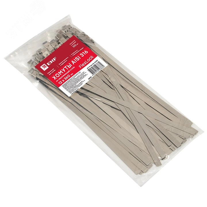 Хомут AISI 316 из нержавеющей стали, 12x360 (100 шт.) FlexLock PROxima