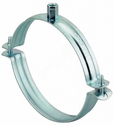 Для производства хомута применяется сталь с гальваническим покрытием цинком. Он имеет два запирающих винта для максимально большого угла открытия и простой установки трубы. Крепежный элемент компактной конструкции, без звукоизолирующей прокладки.