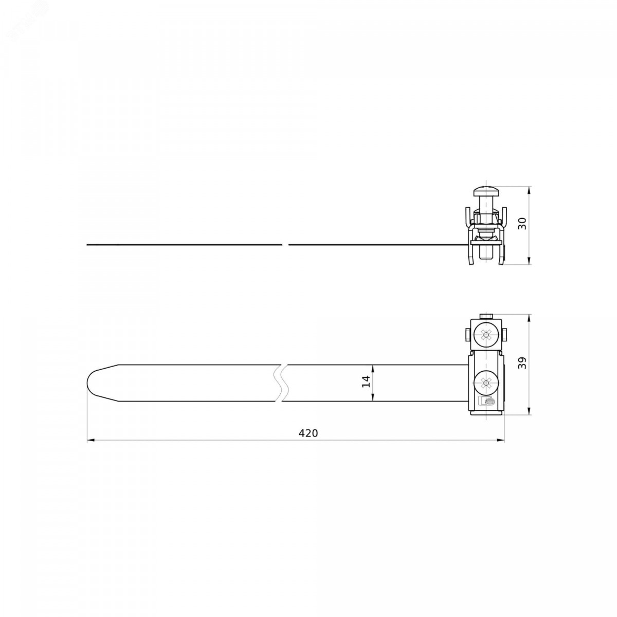 Прямой держатель болтовой для прутка D 5-10 мм H80 мм CU