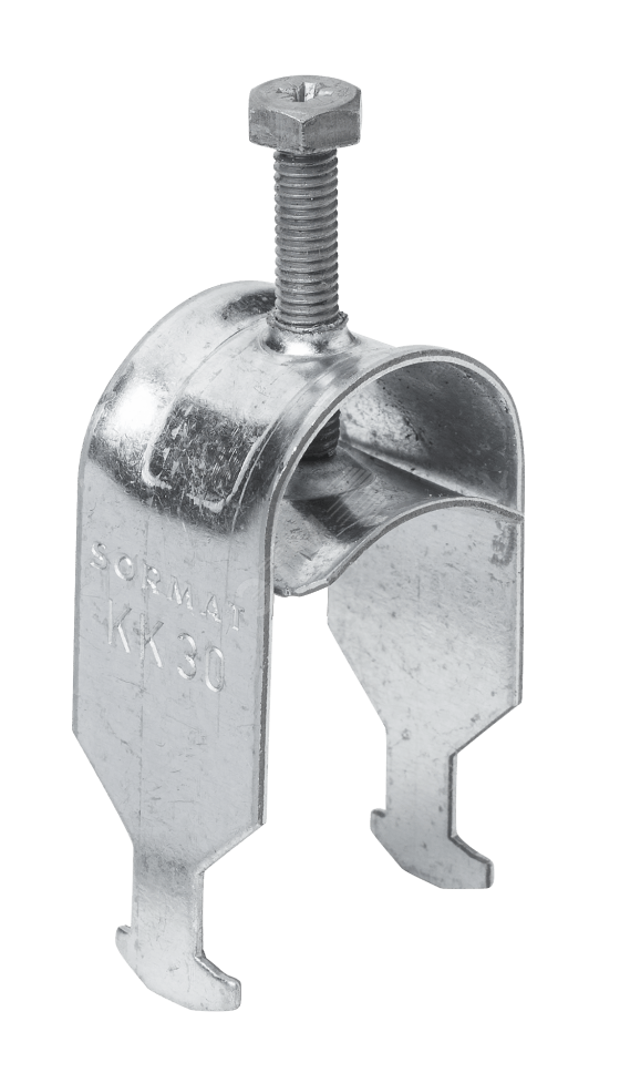 Кабельный хомут KK предназначен для крепления кабеля, труб и др. подобных элементов. Хомут изготовлен из горячеоцикованной стали (толщина покрытия 25 мкм). Шуруп также горячеоцинкованный.