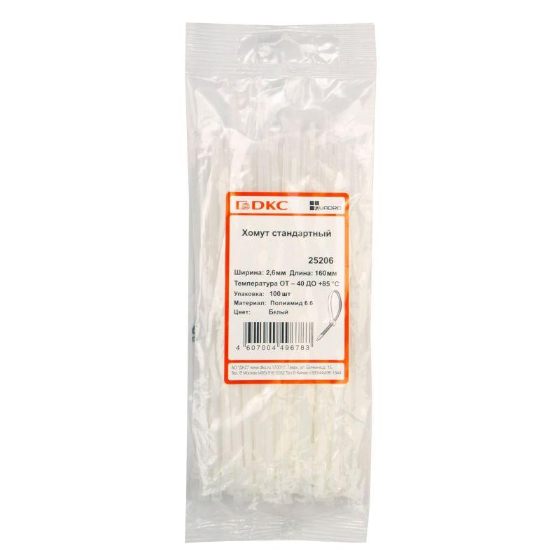 Хомут кабельный 2.6х160 полиамид бел. (уп.100шт) DKC 25206