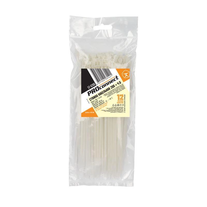 Полное описание: Хомут кабельный 3.6х200 нейл. бел. (уп.100шт) PROCONNECT 57-0200