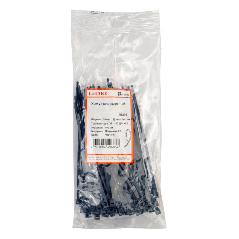 Хомут кабельный 3.6х200 полиамид черн. (уп.100шт) DKC 25314
